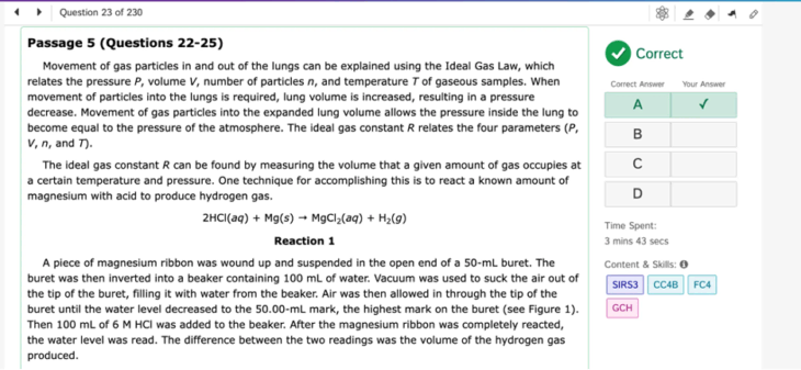 3. Biological and Biochemical Foundations of Living Systems (Bio/Biochem) | 95 minutes | 59 | Combination of passage-based and discrete |